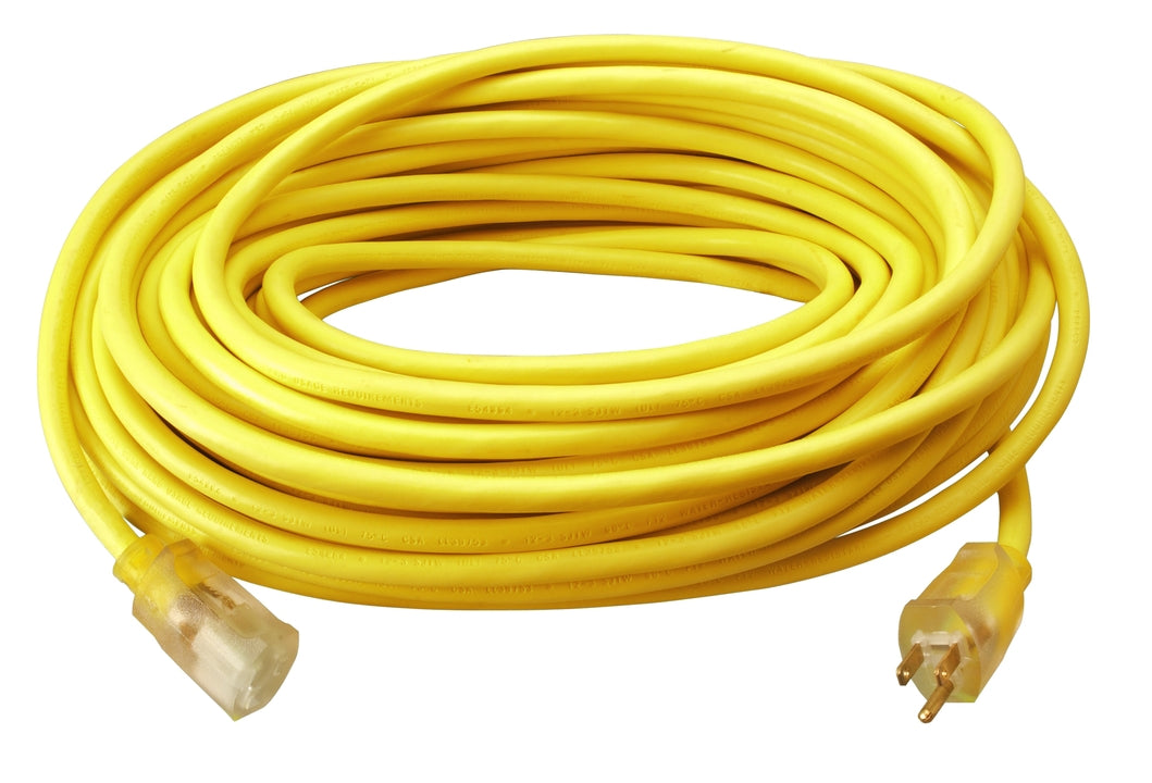 SJTW Yellow Ext. Cord w/ Lighted End, NEMA 5-15 12/3