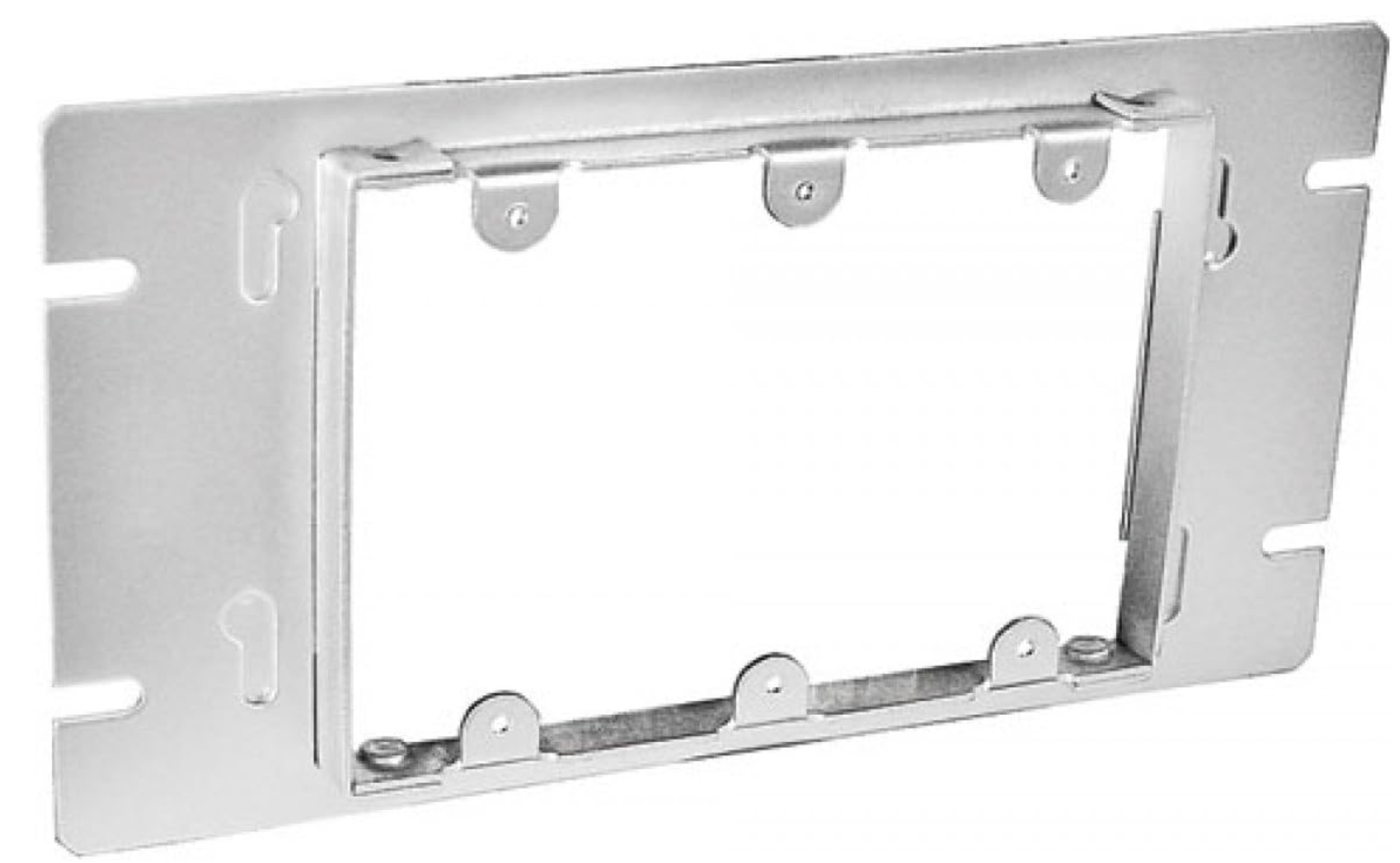 This square mud ring fits securely over an electrical box, providing added depth for flush wall installations. Available in raised heights of ½", ⅝", and ¾", it features a rectangular opening for compatible box covers.