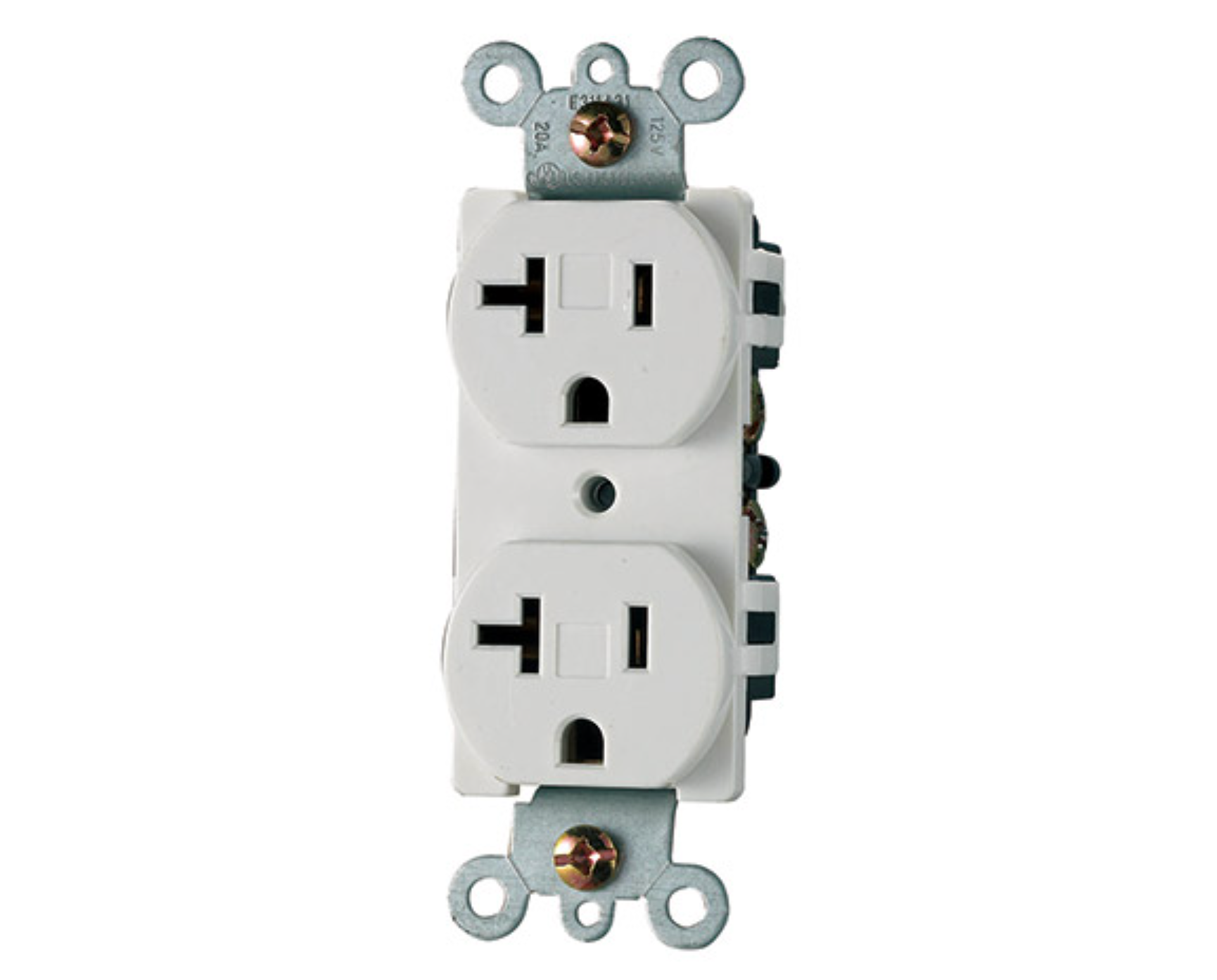 15/20Amp, 125Volt, 2P, 3W, With Ears Duplex receptacle, Straight Blade, Residential, Grounding, All screws backed out contractor Pack, quick-wire Push-In & Side Wired, Steel Strap