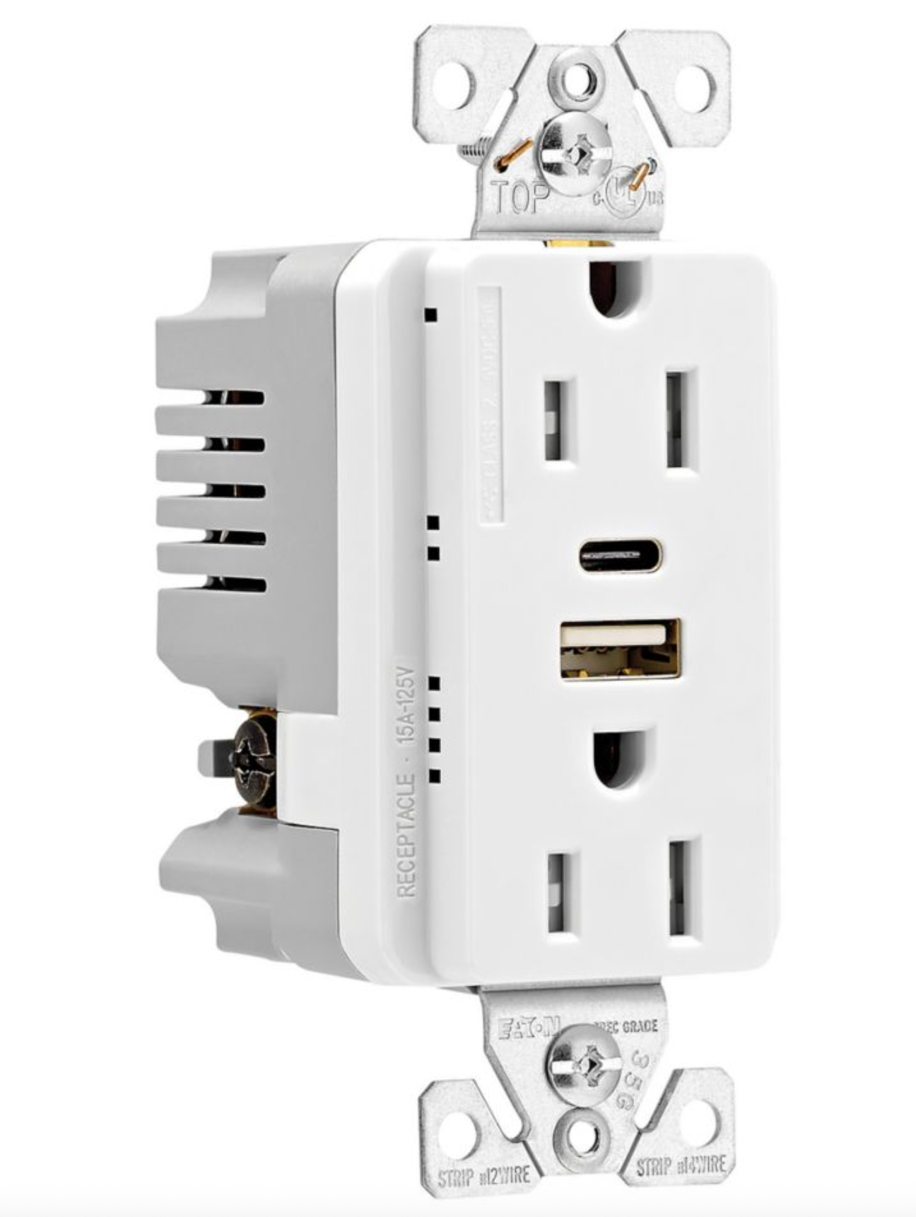 Eaton Combination USB A/C Duplex Receptacle 15AUSB-ETN- TRUSBAC15-W