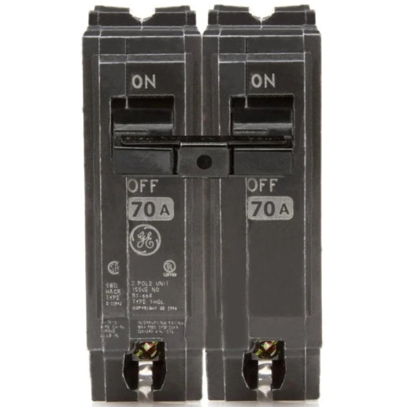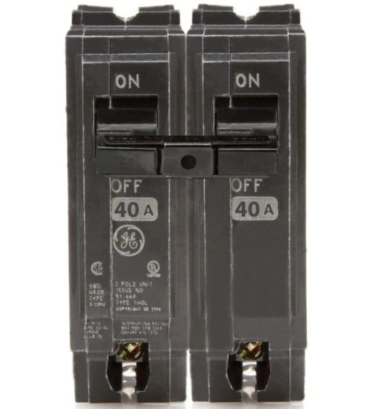GE's THQL series offers a comprehensive range of double-pole circuit breakers designed for residential and light commercial load centers. These plug-in breakers provide reliable thermal-magnetic protection and are available in amperages from 15A to 125A, making them ideal for 240V circuits, large appliances, and subpanel installations.