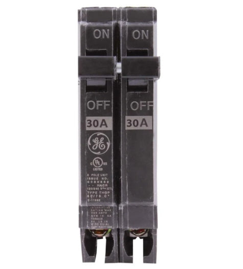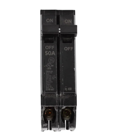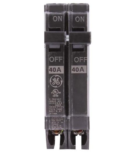 GE's THQP 2-Pole Spacesaver series delivers full-circuit protection in a space-saving design that's half the width of standard 2-pole breakers (just 1" total width). These innovative breakers are available in 15A through 50A ratings, providing compact solutions for 240V circuits while maintaining all the safety and performance of standard-sized breakers.