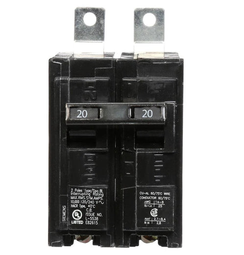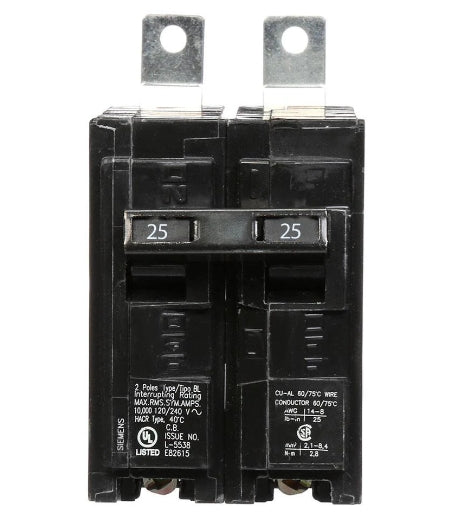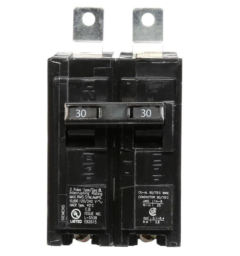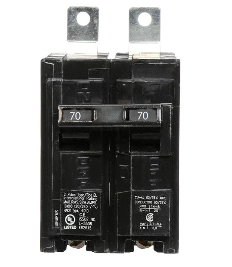 The Siemens BL Series circuit breakers provide reliable thermal-magnetic protection for residential, commercial, and industrial electrical systems. These 2-pole, 120/240VAC breakers feature a bolt-on connection, ensuring secure installation, and a 10kA interrupting rating @ 240V for robust short-circuit protection.