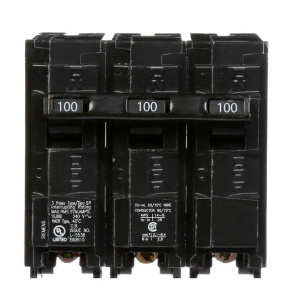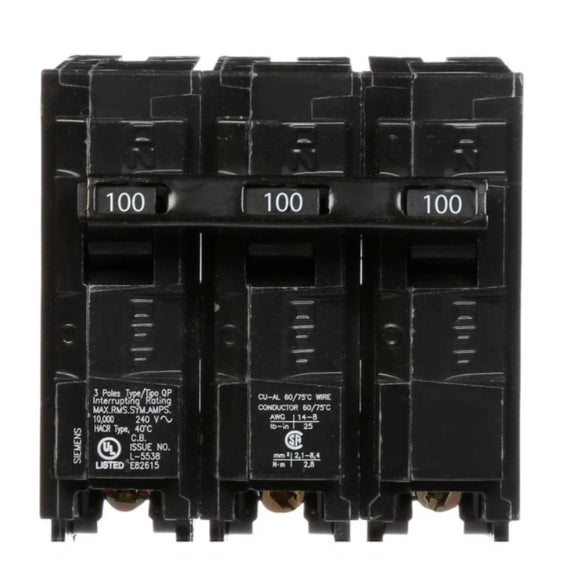 Siemens Bolt-on 240VACV 100A 3 pole circuit breaker 10kA@240V