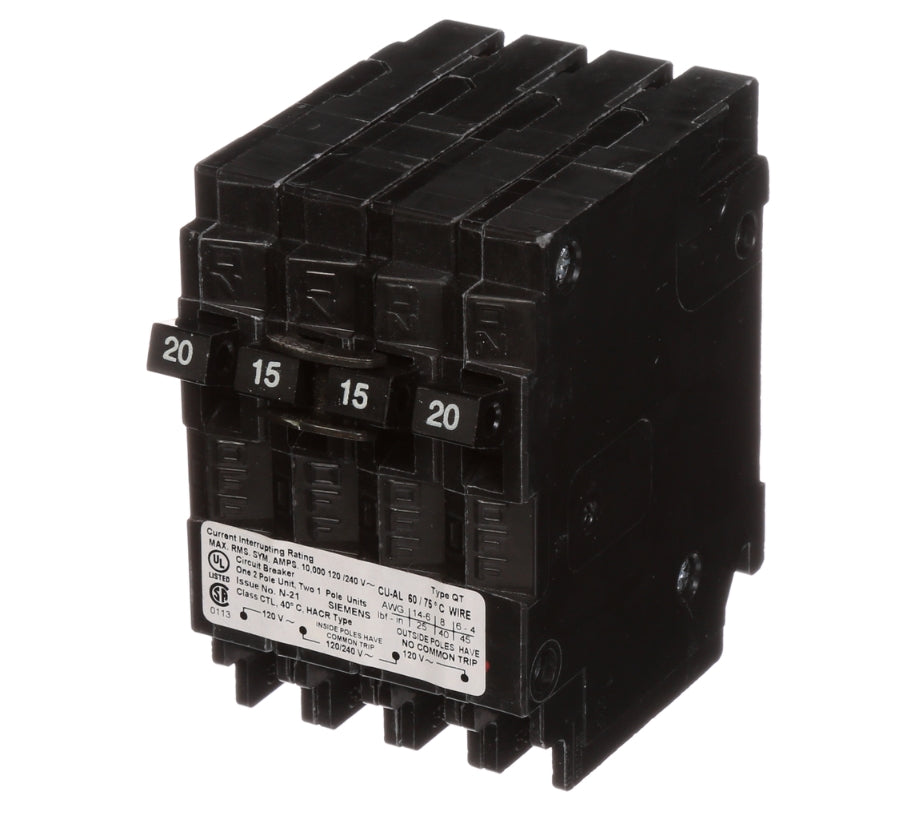Siemens 2P-15A 15A Quadplex Circuit Breaker-Q21515CT
