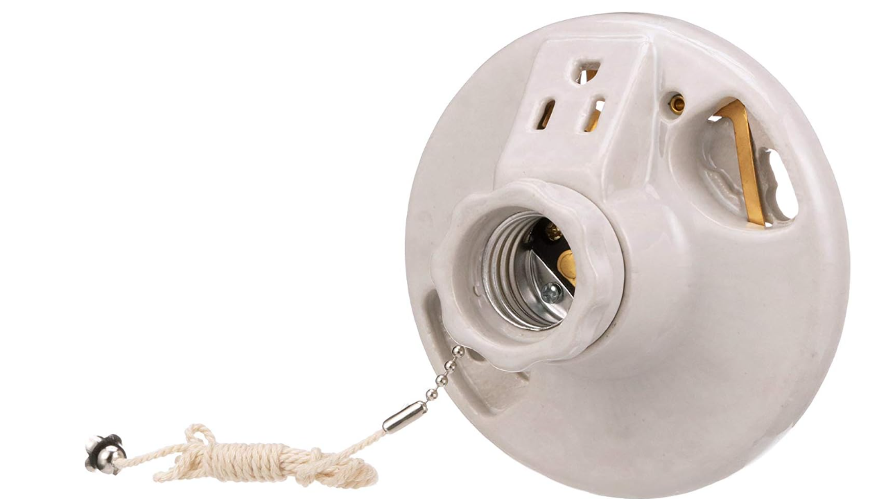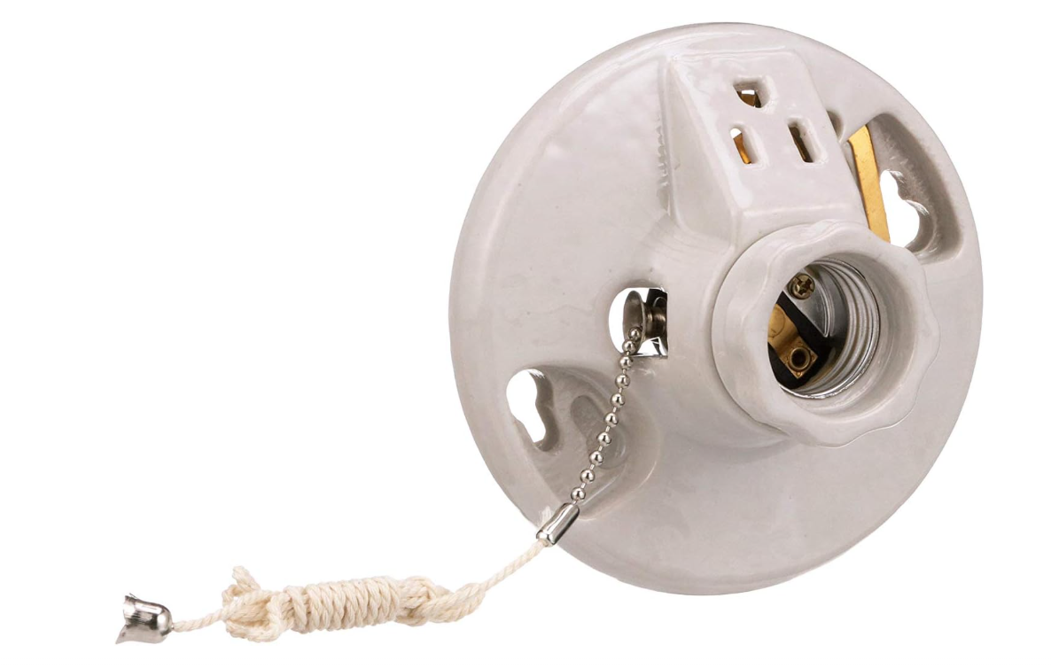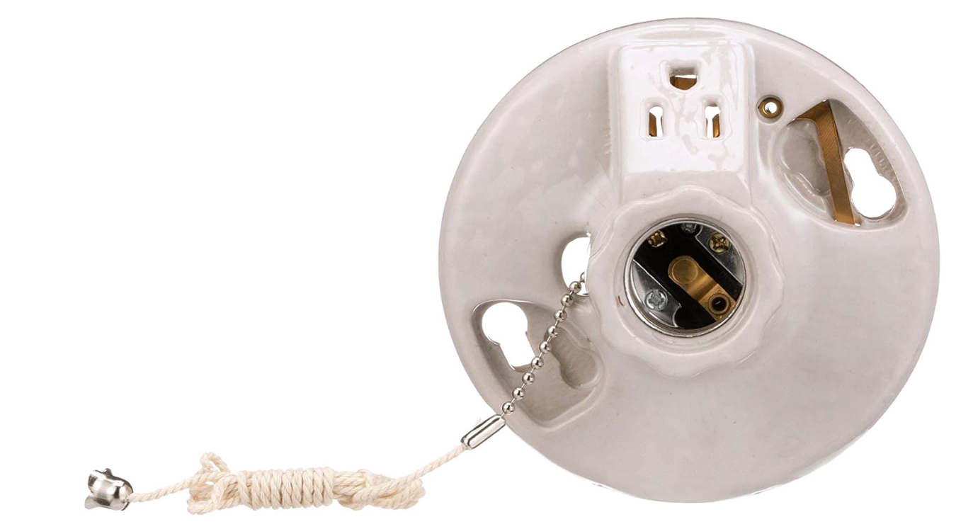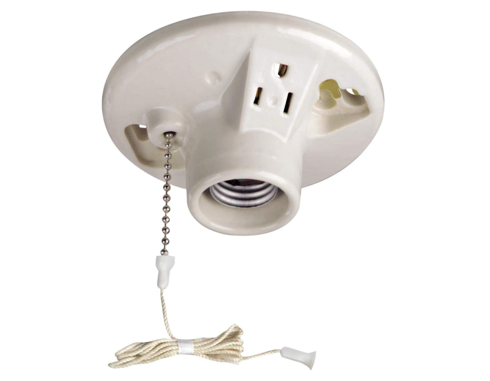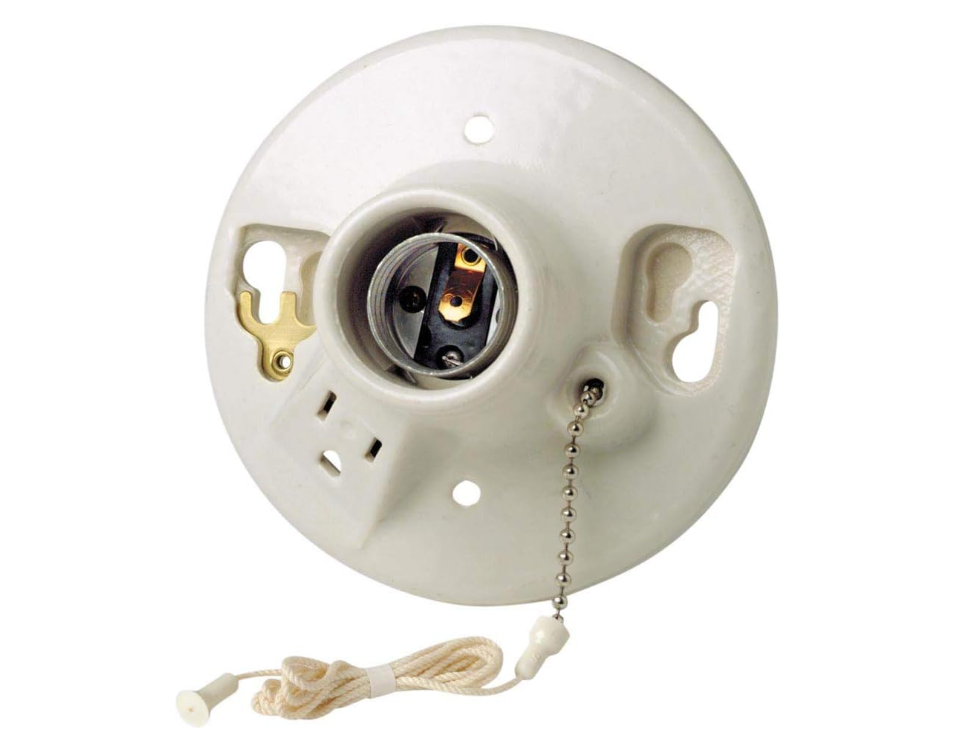 Eaton Porcelain Ceiling Lampholder w/ Chain & Grounding Outlet