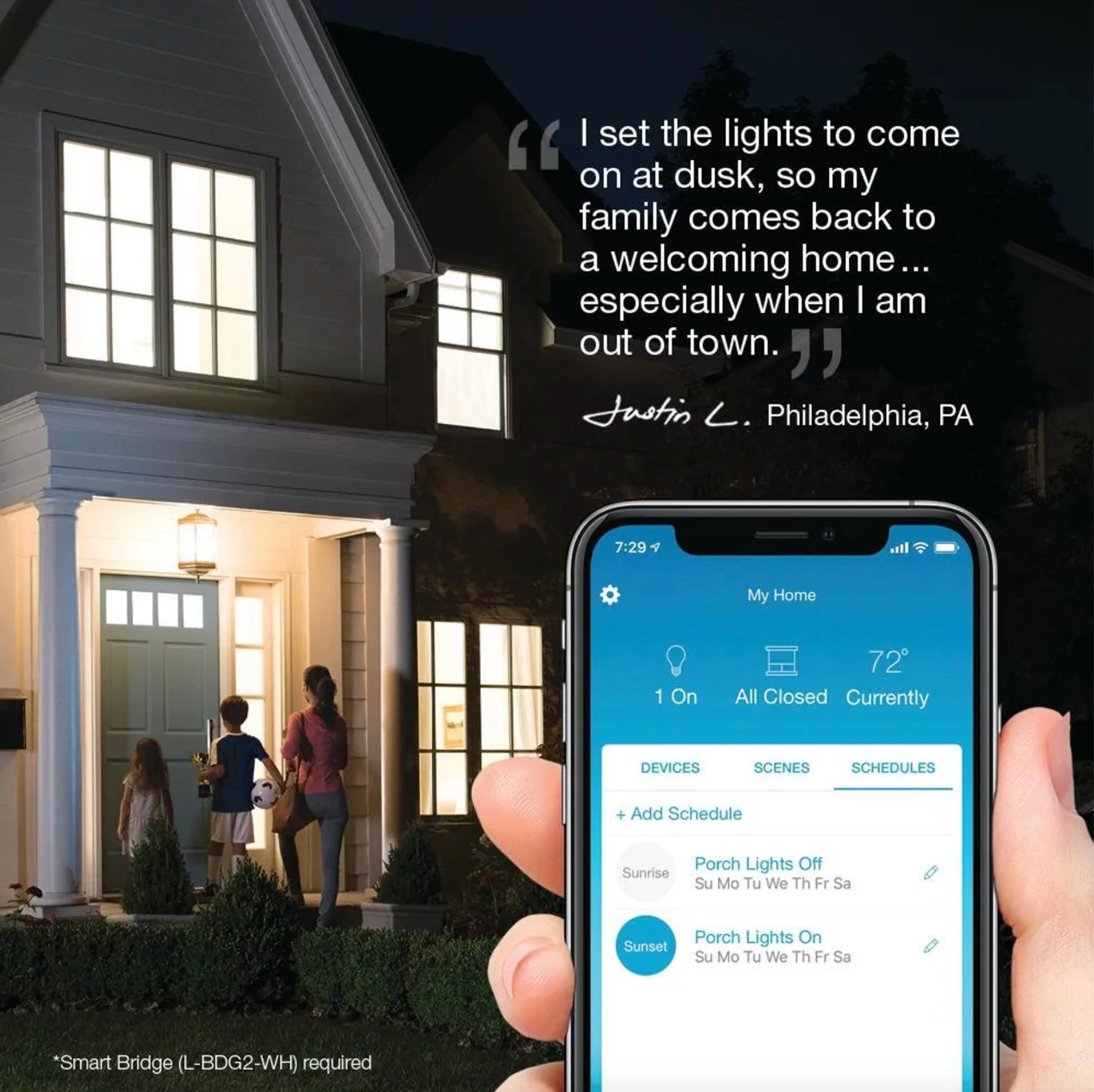 ✅ Wireless Smart Control – Works with Lutron app, voice assistants (Alexa/Google/HomeKit), and automation (requires Caséta Smart Hub, L-BDG2-WH).