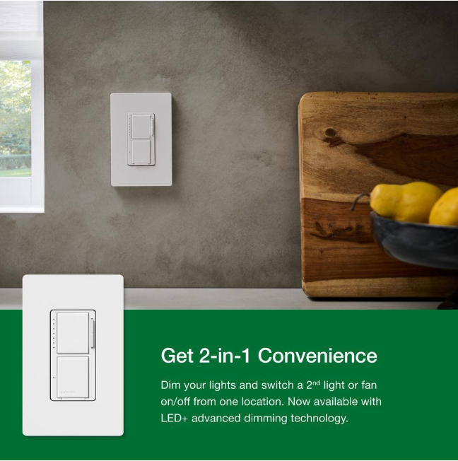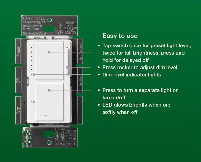 Smooth Dimming: Provides gradual dimming for compatible bulbs (incandescent, halogen, dimmable LEDs/CFLs).