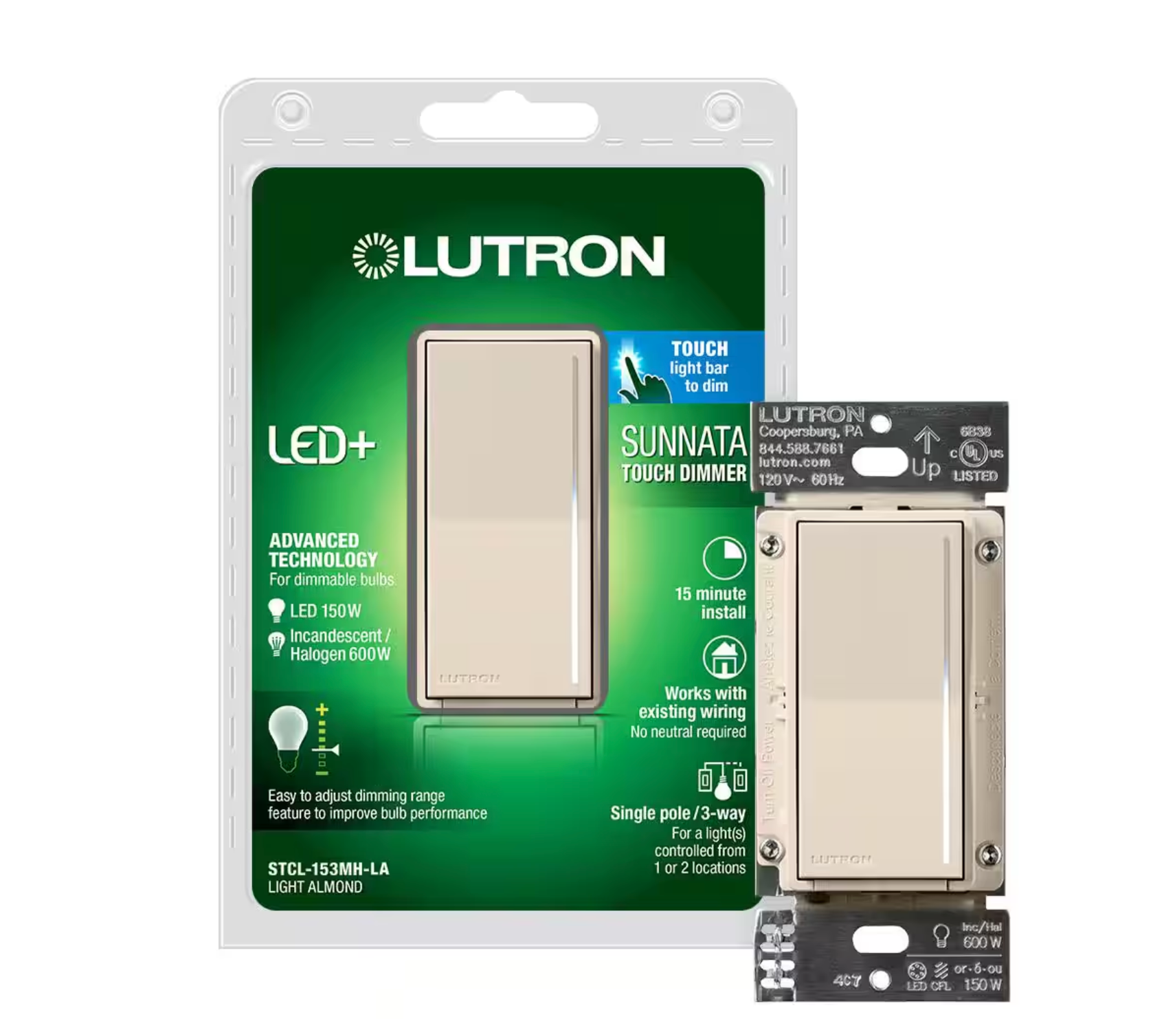 Lutron SUNNATA Touch DimmerLUT-ST- STCL-153M-BL